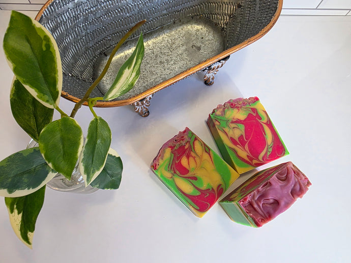 Handmade soap scented with patchouli, lemongrass, orange, pine.